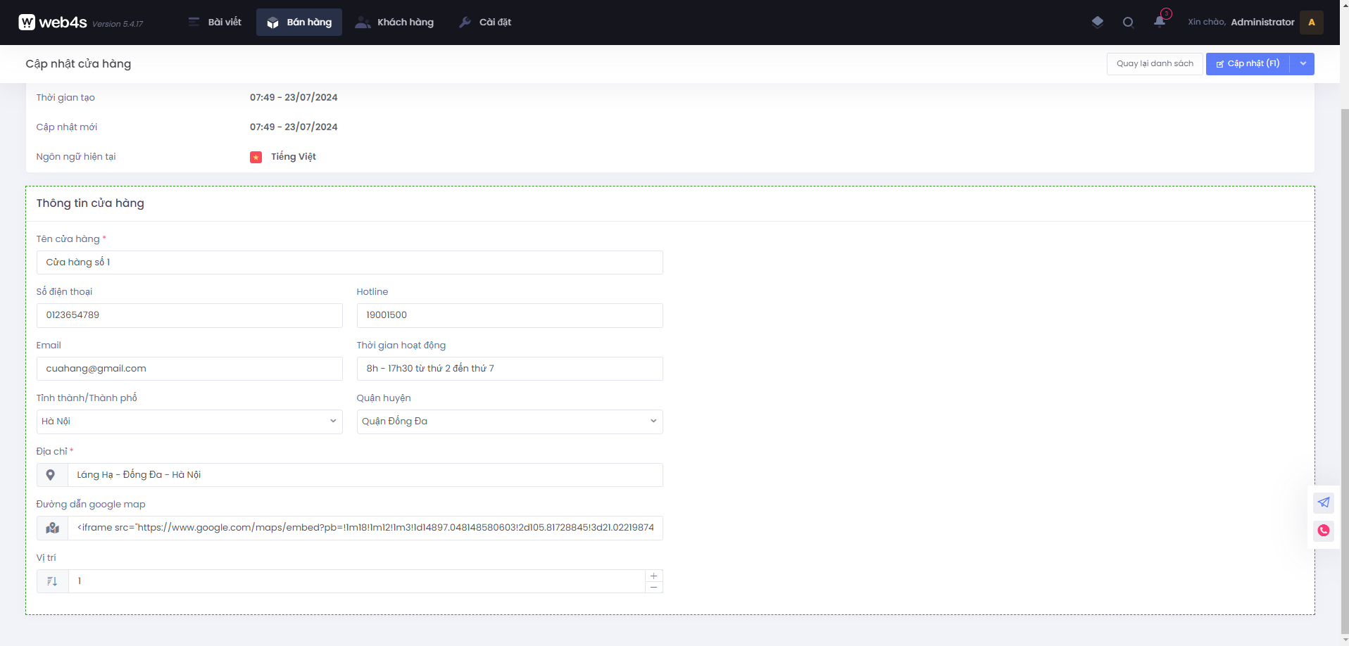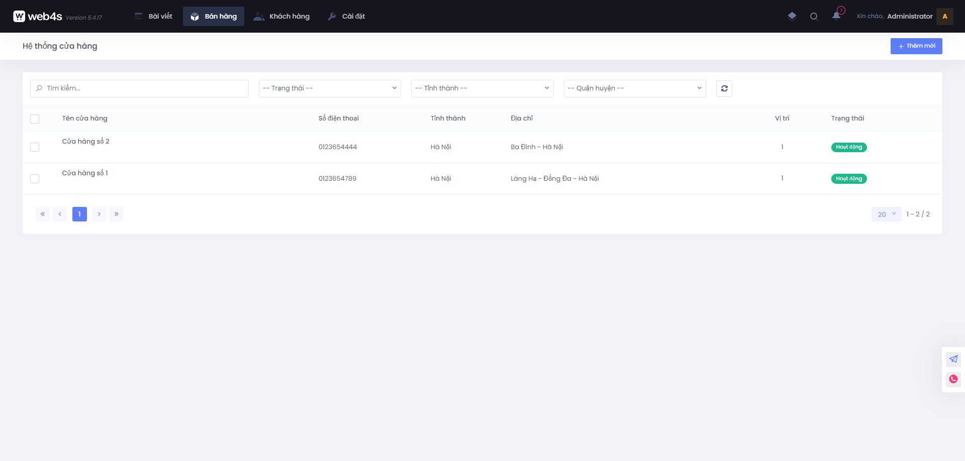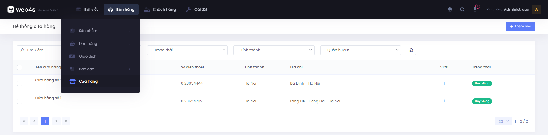Hệ thống cửa hàng sẽ nằm ở menu quản lý bán hàng