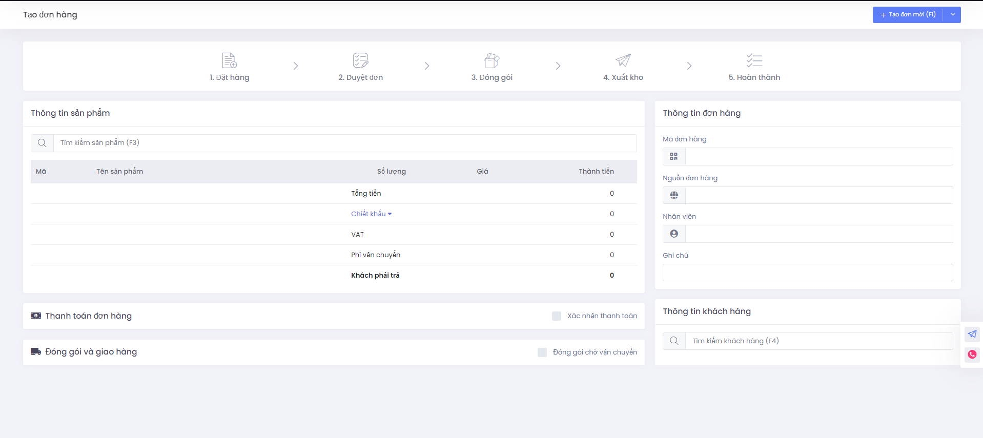 1. Màn hình thêm mới đơn hàng