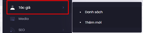 - Đầu tiên, người quản trị vào mục tác giả ở menu.