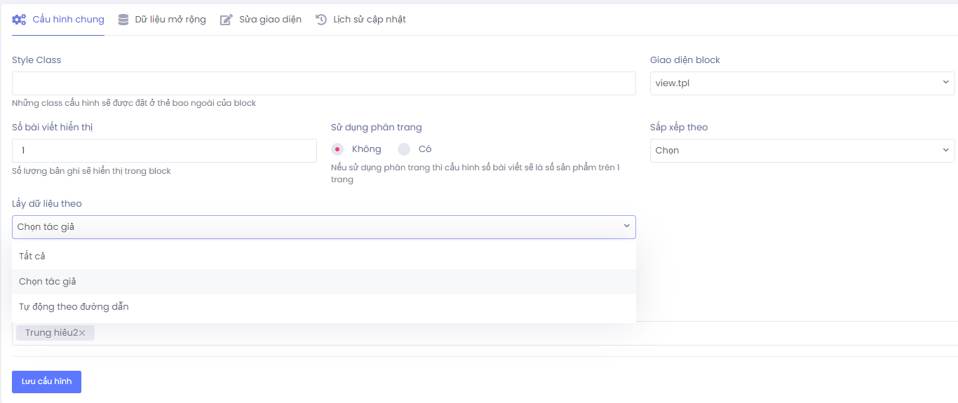 6. Cấu hình bài viết liên quan đến tác giả ở block bài viết